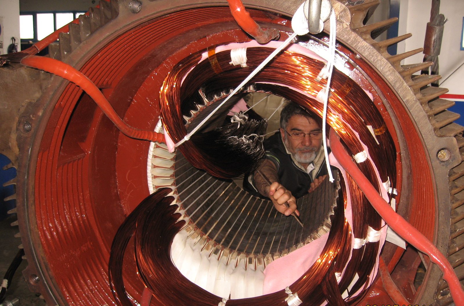 Bütün bu motorların temel ilkesi, manyetik saclardan yapılmış bir kütlenin, döner bir elektromanyetik alan yardımıyla sürüklenmesine dayanmaktadır. Bu iki grup motorlarda da eksenli iki armatür bulunmakta. Bunların ilki olan stator sabit, ikincisi ise rotor hareketlidir. Senkron motorun statoru asenkron motorun statoru ile aynı şekilde ve aynı yapıdadır. Birbirinden vernikle yalıtışmış manyetik saclardan oluşan bir bilezik biçimindedir, bu sacların üzerindeki yivlere üç fazlı akımlarla beslenen bir sargı sarılmıştır. Bir senkron motorda manyetik alanı, rotorun sargısını besleyen bağımsız bir doğru akım yaratır; burada rotorun çalışma hızı vardır. Bu tip motorların başlıca yetersizliği, rotorun kendi başına harekete geçememesi sorunudur. Asenkron motorun çalışması oldukça farklıdır: rotorun sargısı çok fazladır ve rotora yalnız statordan kaynaklanan tek alan akım indükler. Rotor başka hiçbir enerji kaynağına bağlı değildir. Dönme hızı “ilk çalışma dahil” ne olursa olsun, mekanik bir kuvvet çifti sağlar; düzenli çalışma sırasında bu hız senkron hızından yani döner alan hızından farklıdır. Bu hız farkı motorun üzerindeki yüke bağımlı olmaktadır.